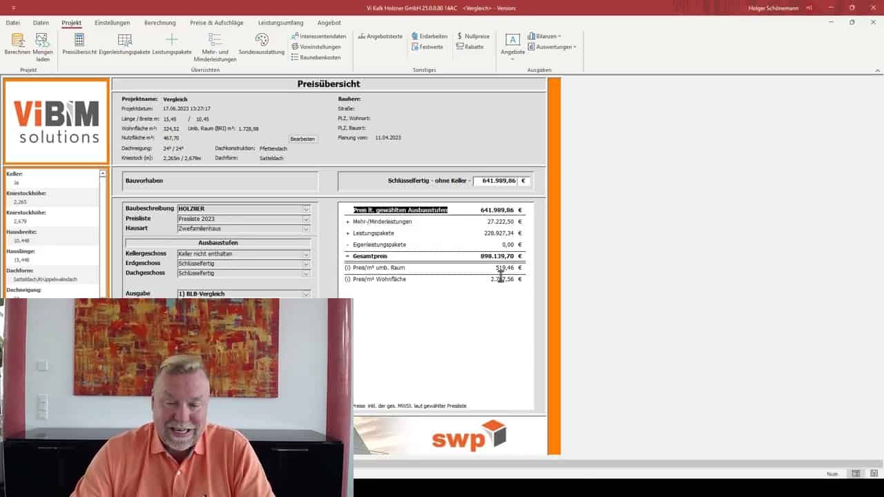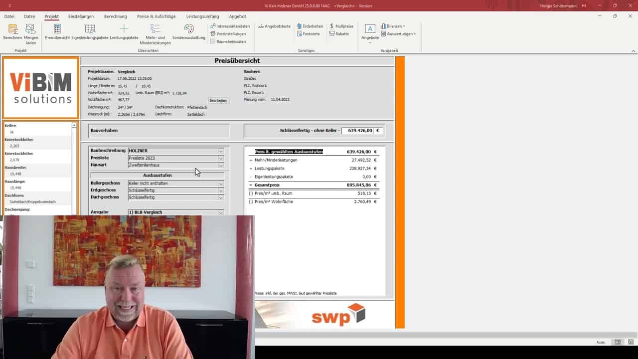 Ein "Nebeneffekt" der angelegten Preislistenpositionen ist die Preistransparenz bzw. die Möglichkeit, z.B. für Ihre Vertriebspartner eine Preiskompetenz aufzubauen, da Sie schnell auf einen Blick sehen können, was kostet denn ein Quadratmeter [m²] Bodenplatte oder Außenwand oder die Änderung der Innentür auf 2,01 m.